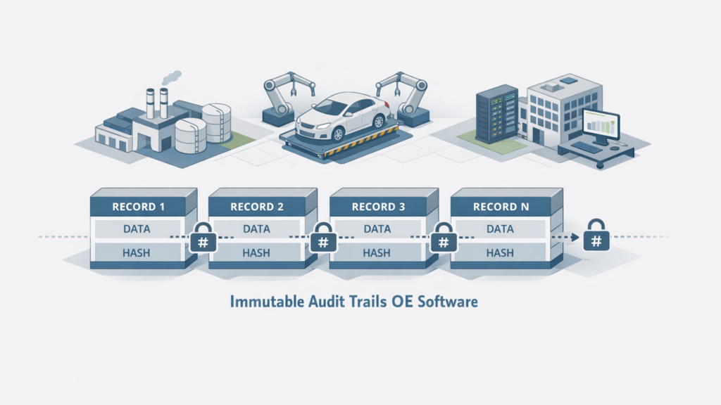 Concrete guide to designing and implementing compliance‑ready immutable audit trails for OE software in manufacturing, industry, enterprise and automotive sectors.