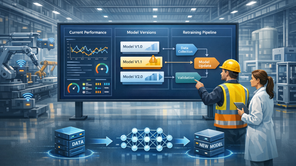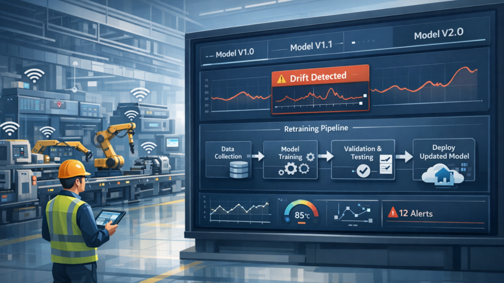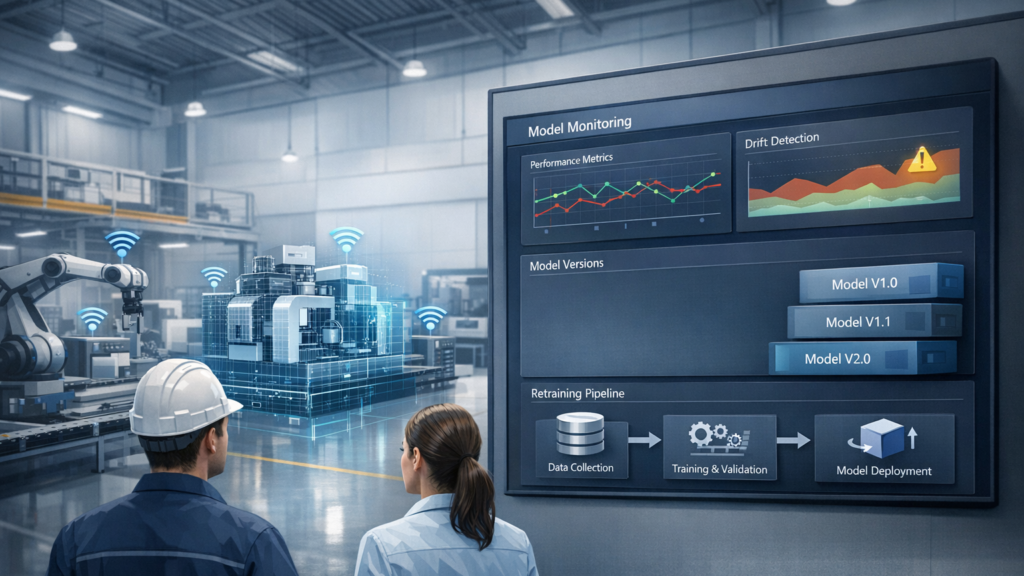 Practical guide for manufacturers and enterprises on lifecycle governance for digital twins: how to detect model drift, set retraining rules, and operationalize validation and deployments.
