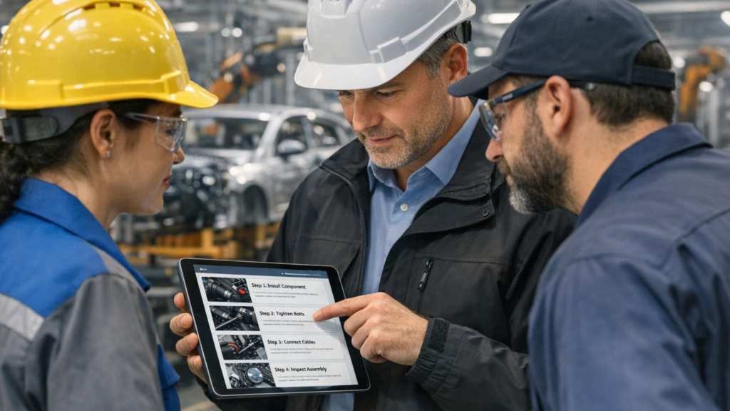 Practical guide to using Generative AI to create, standardize and maintain work instructions and SOPs in manufacturing and automotive — with implementation steps, controls and KPIs.