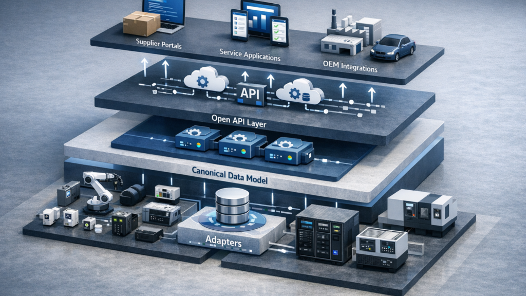 - Canonical data model: Establish a core schema for parts, products, assets and events; map internal models to the canonical layer.